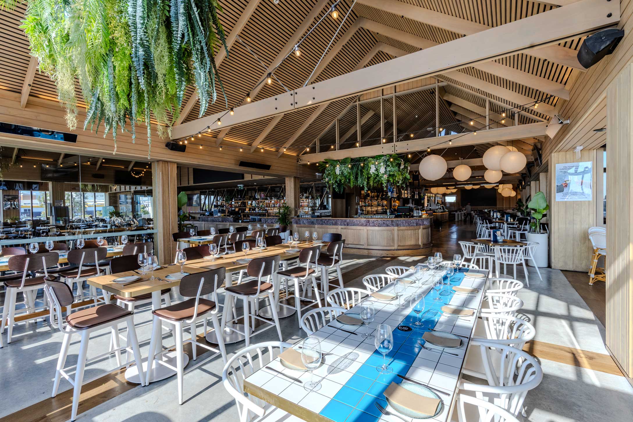 Reserve a side of the main dining room, where funky white ball lighting and marina views set the scene. This section features comfortable low-backed seating and an airy atmosphere, making it perfect for sit-down celebrations and family-friendly dining. With a relaxed yet elevated vibe, it’s the ideal space to enjoy great food and even better company.